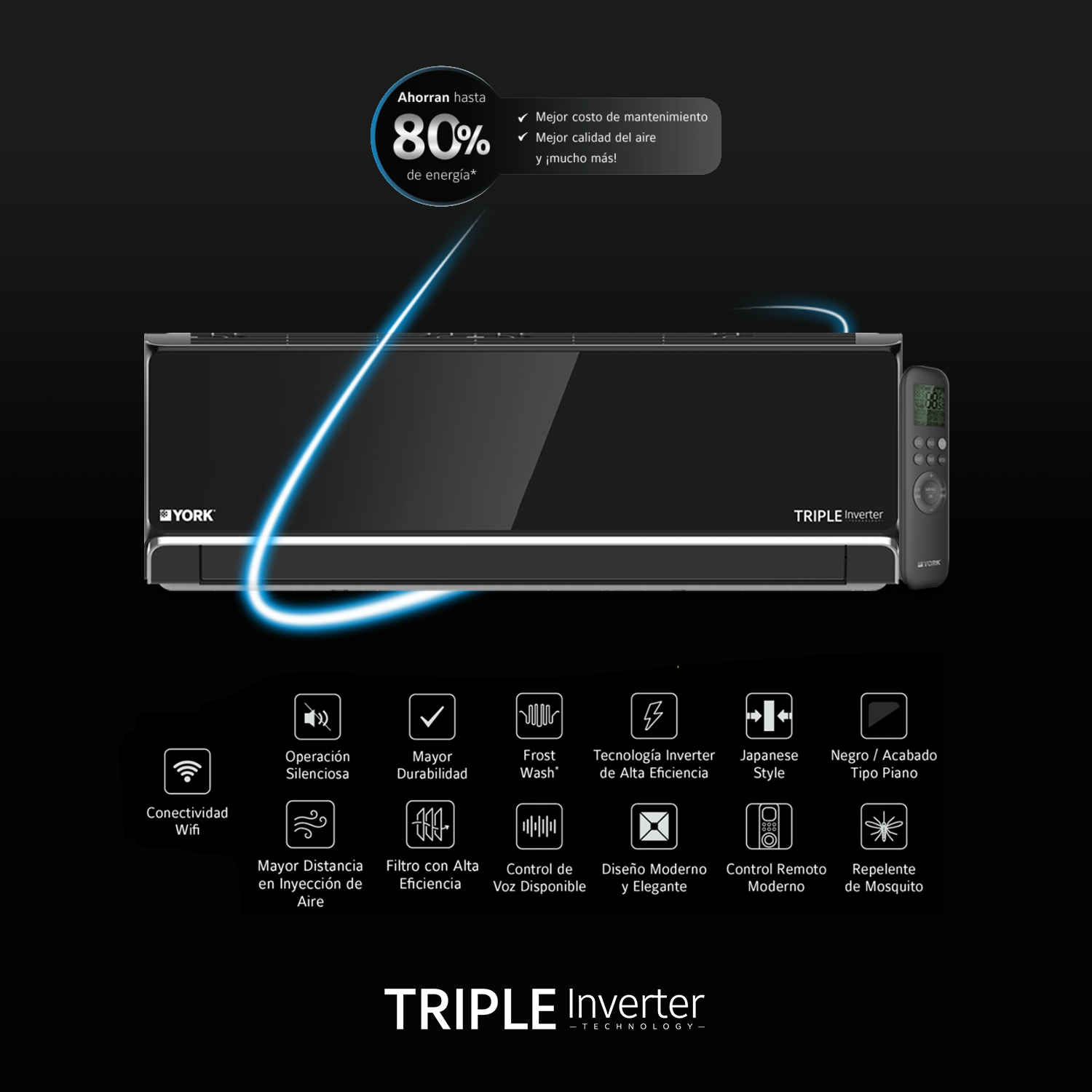 MINISPLIT YORK, TRIPLE INVERTER, 2TR, 220V, SOLO FRIO